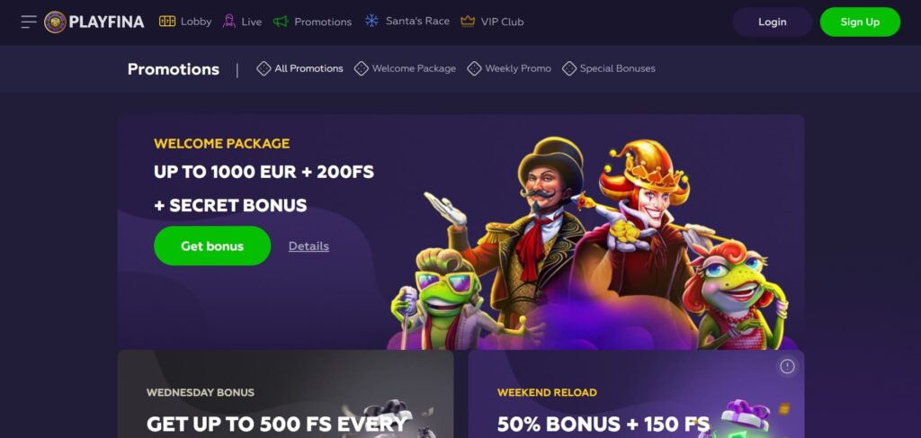 Typically, Playfina no deposit bonuses come in the form of free spins or bonus cash that can be used on selected games. Players can use these bonuses to explore the casino and decide if they want to continue playing with their own money.